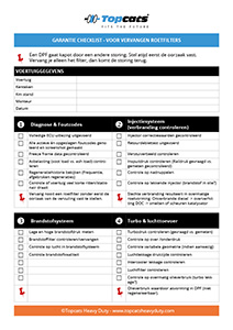 Controleer voor terugplaatsing van een roetfilter de checklist voor vervangen roetfilter en bij terugplaatsing van een katalysator de checklist voor vervangen katalysator om te controleren of er geen onderliggende problemen zijn, die een negatief gevolg hebben op de werking van uw roetfilter of katalysator.